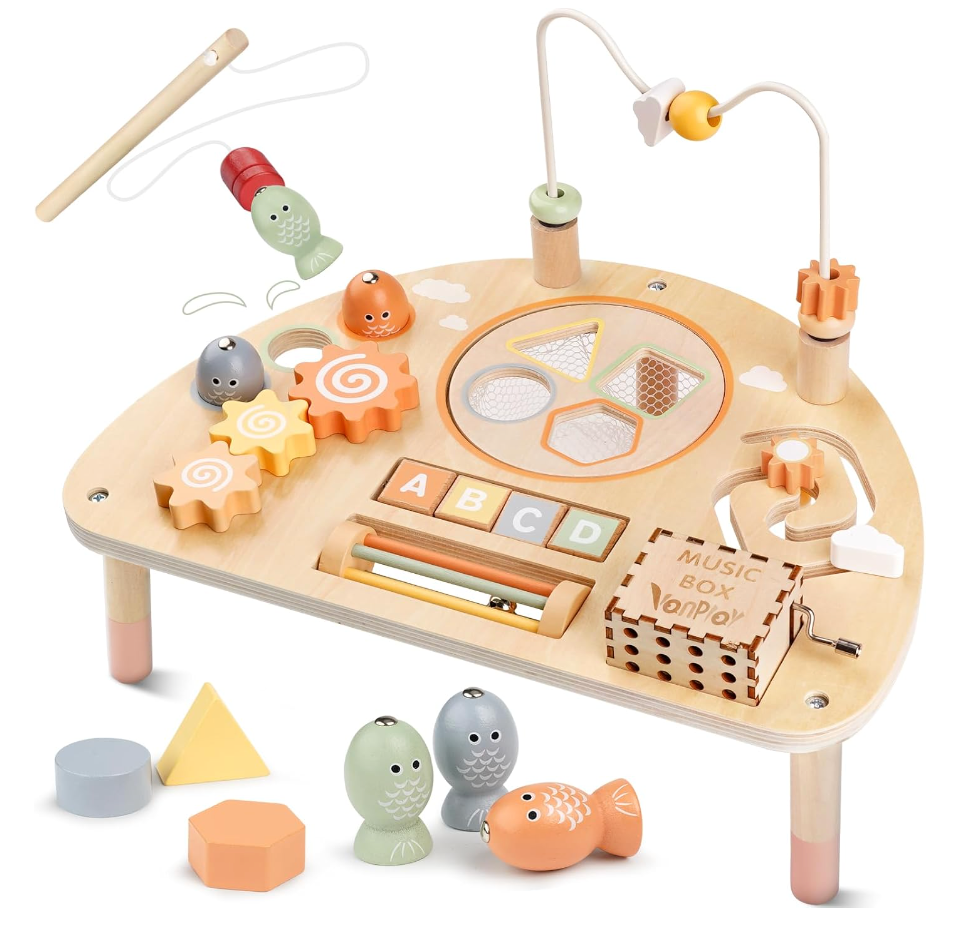 - Table ou centre d’activités multi‑sensoriel – encourage à se redresser, ramper, manipuler.