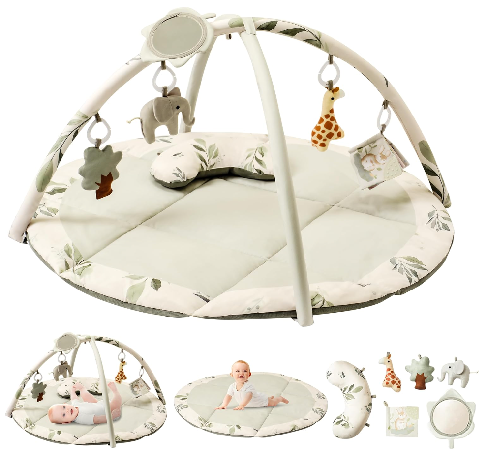 - Tapis d’éveil sensoriel – textures variées, contrastes visuels, premiers sons.